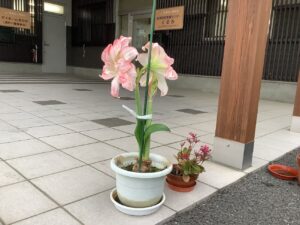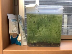 一言でいうとなごやかな職場です。最低でも年に一度は席替えをしています。看護師、主任ケアマネジャー、社会福祉士、事務、地域支え合い推進員、女性ばかり9名の職員が勤務しています。事務所内ではメダカを飼っていたり(恥ずかしがり屋のメダカで隠れています)、入口には花を育てたりしています。