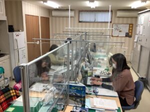 前回お邪魔させていただいた時と座席が違っていますね。席替えも皆さんが仲良く働くコツかもしれないですね。皆さん、勤務されてどれくらいになりますか?こちらで働くきっかけなどはありましたか?