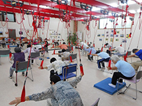天井からつり下げた紐を使用することで、体に無理のない柔軟運動が可能となり、バランス力や関節の可動域を保つことで、身体機能維持に効果が期待できます。