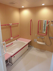 明るく、清潔感あふれる浴室で、職員の介助によりお一人ずつ安全にご入浴いただけます。