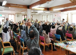 地域の方々が自宅で元気に暮らすために、院長の講演をはじめ、理学療法士による自宅でできる体操や低栄養予防の栄養補助食品の試食会、介護相談会などを開催しました。