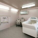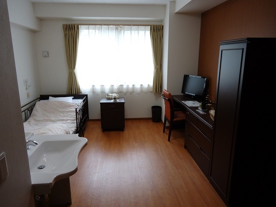 | 居室設備 | ナースコール,介護用電動ベッド,寝具一式,カーテン,洗面台,温水洗浄便座付トイレ,照明器具, 冷暖房設備,テレビ端子,家具(チェスト、ワードローブ、椅子) |
