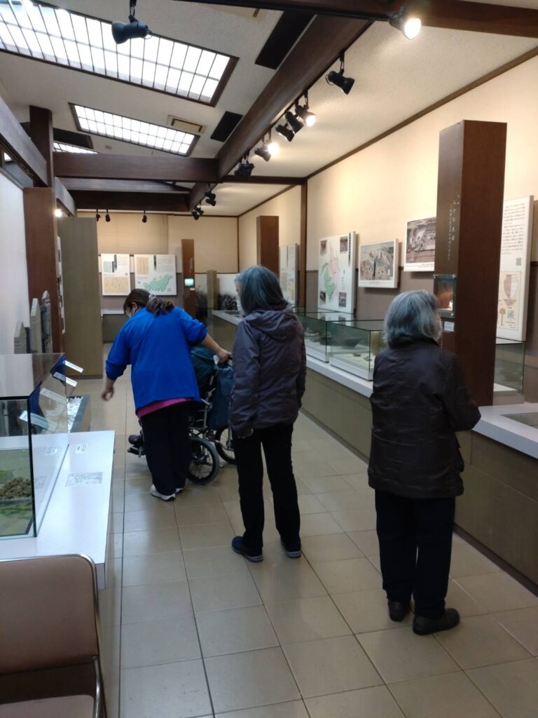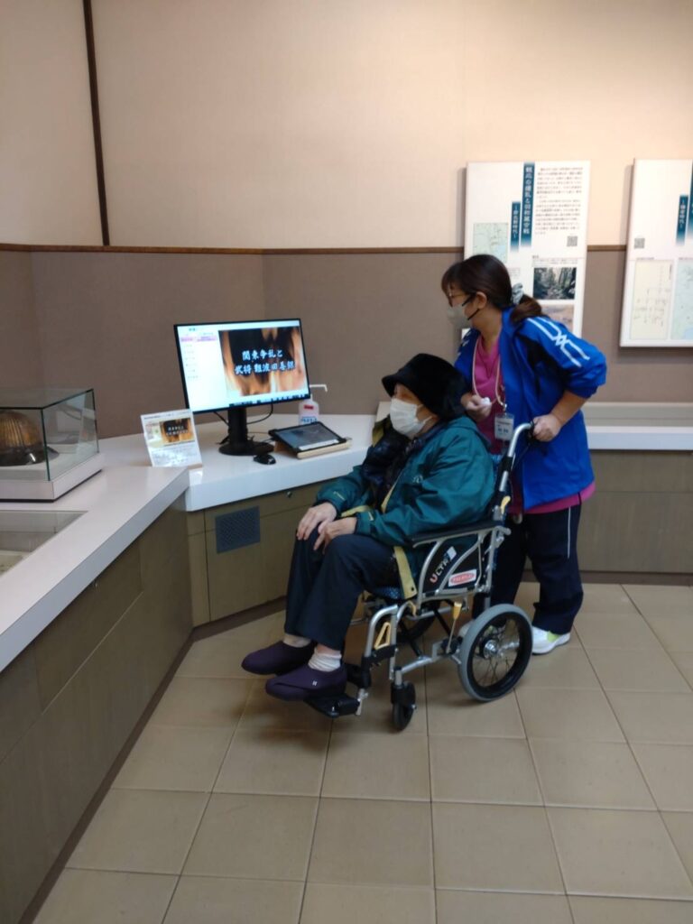 11月15日(水)医療デイの活動プログラムの一環で利用者様4名と一緒に、富士見市にある難波田城公園へ行ってきました。城跡ゾーンと古民家ゾーンがありますが、今回は資料館へ。展示物や装飾に興味を持たれゆっくり見学されていました。古民家ゾーンも中へ入れてお茶を飲んだり休憩ができるようですので、次回また他の利用者様と行きたいと思います。今回は医療デイの取り組みとして行きましたが、来年は介護保険でのご利用の方もお出かけレクをしたいと考えております。